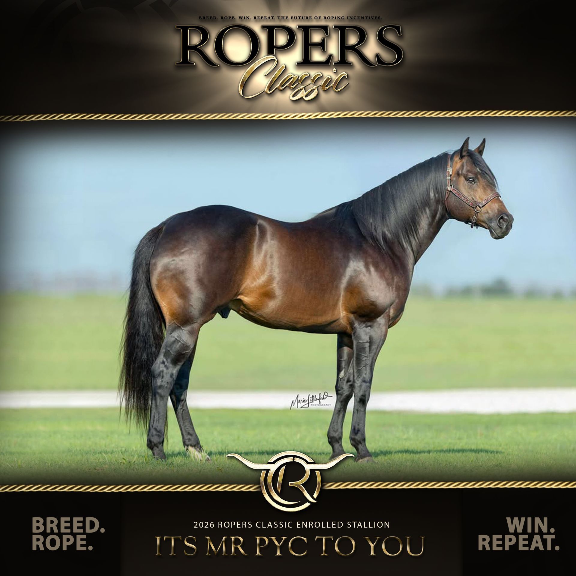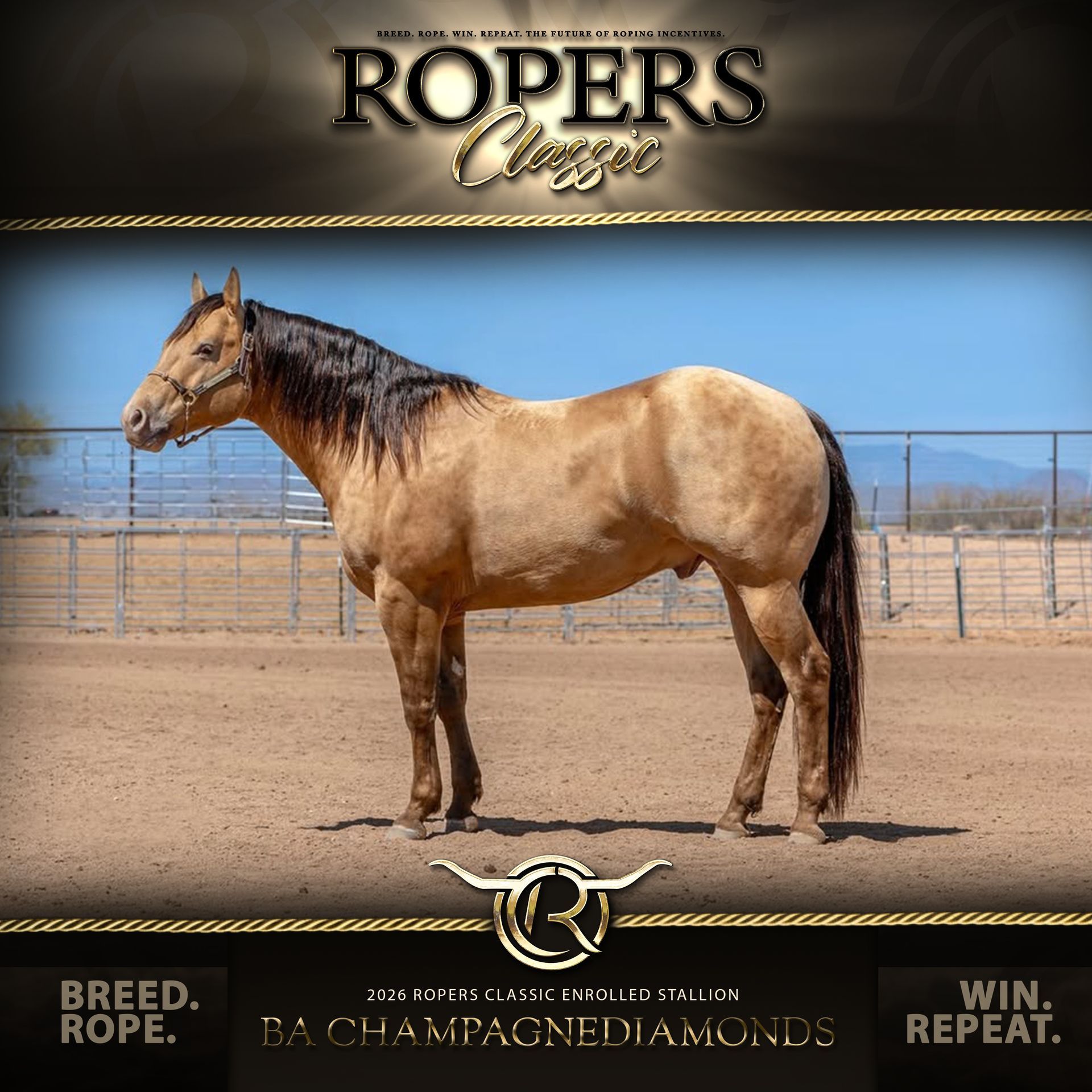 Welcome to the Ropers Classic Enrolled Stallions page. The heart of our program. Each stallion listed here is officially enrolled in the Ropers Classic, making their progeny eligible for nomination and lifetime access to sidepots at major futurities and jackpots nationwide. These stallions represent the future of rope horse breeding and performance. Bred to win, promoted to shine, and backed by the first sidepot incentive of its kind in the roping industry.