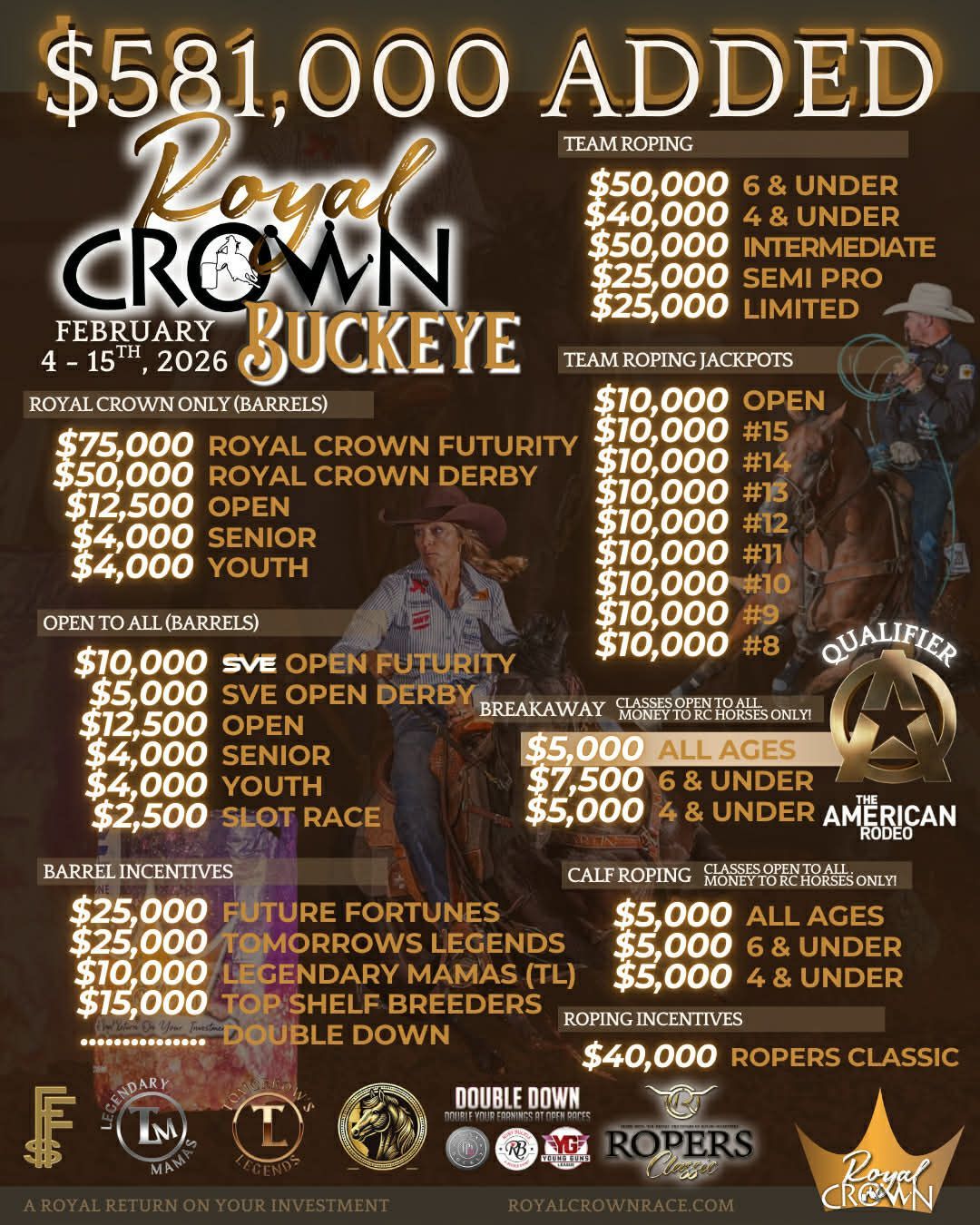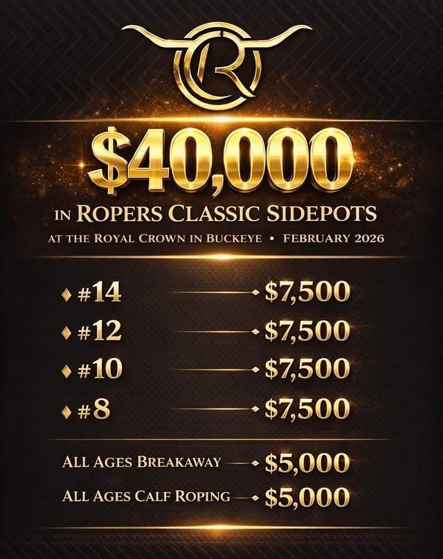 Sidepots are approved on a case-by-case basis and are designed to expand opportunities for nominated horses while supporting quality roping events across the country.
